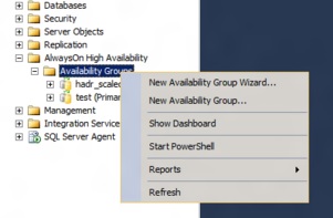 There however is some good news to this little problem.  The good news in this case is that you can create a SQL Server availability group, which has an availability group listener, without putting any databases in it.  This is done by creating the availability group without using wizard that is available within SQL Server Management Studio.  Instead of starting the wizard select the “New Availability Group…” option from the Availability Group context menu as shown below.